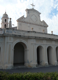 Dinnanzi al Santuario troviamo un piccolo giardino e un piazzale panoramico da dove nelle giornate limpide si possono scorgere le coste liguri a Est e addirittura quelle francesi a Ovest.